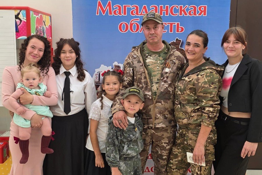На участке ветеран СВО из Сеймчана Владимир Тимохов появился с пятью детьми, внучкой и супругой. Награжденный медалью «За отвагу» отец семейства считает своим долгом воспитать детей патриотами с активной гражданской позицией.