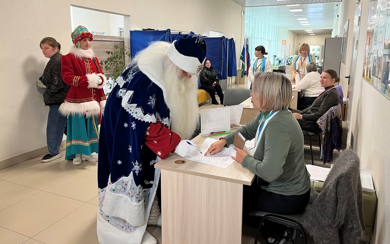 В Арамили на избирательный участок пришел младший брат Деда Мороза — Урал Мороз. Он живет здесь же в своей резиденции.